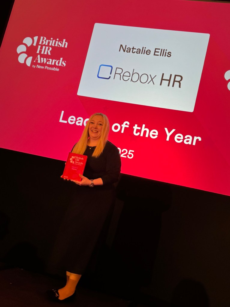 We are thrilled to announce that Natalie Ellis, Managing Director at Rebox HR, has been crowned “Leader of the Year 2025” at the prestigious British HR Awards. The ceremony, held in London’s Covent Garden, celebrated the finest HR professionals across the UK.